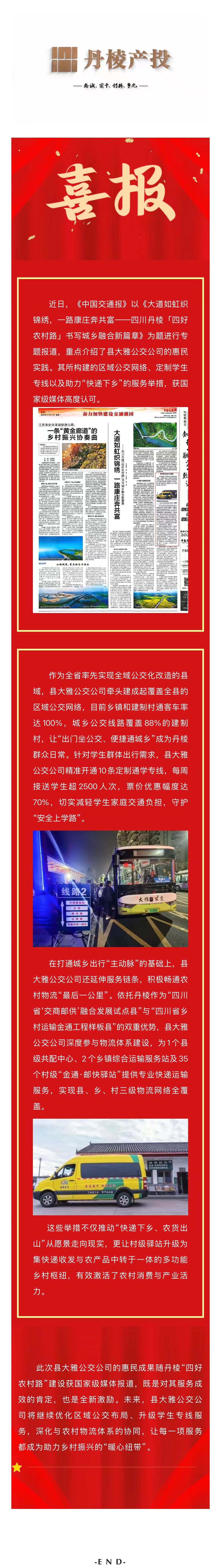 【縣交投公司】喜報(bào)!丹棱大雅公交惠民實(shí)踐登《中國交通報(bào)》,區(qū)域公交、學(xué)生專線與快遞下鄉(xiāng)織密幸福網(wǎng)